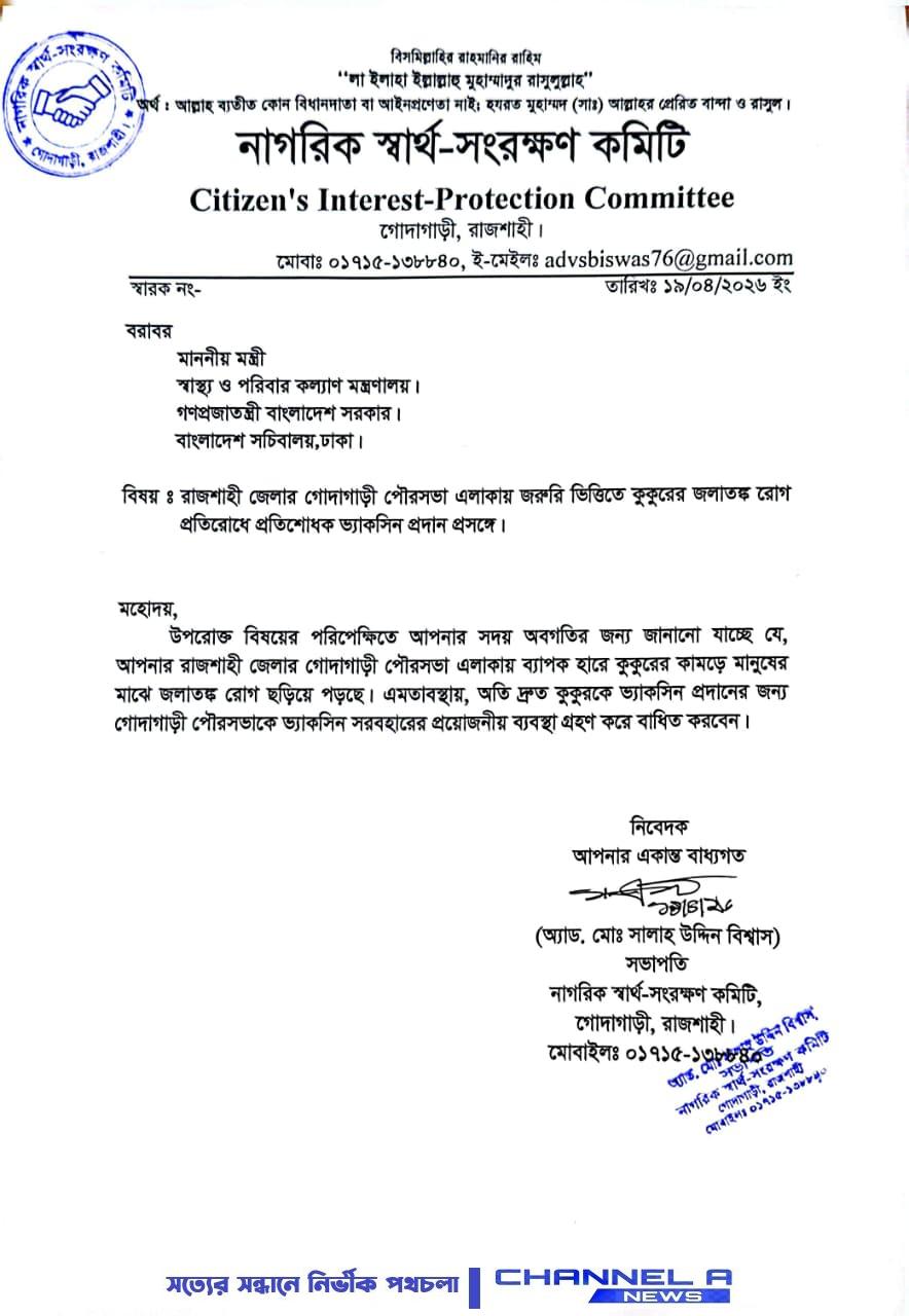 গোদাগাড়ীতে কু’কু’রের উপদ্রব: জলাতঙ্ক রোধে জরুরি ভ্যাকসিনের দাবিতে দুই মন্ত্রণালয়ে আবেদন