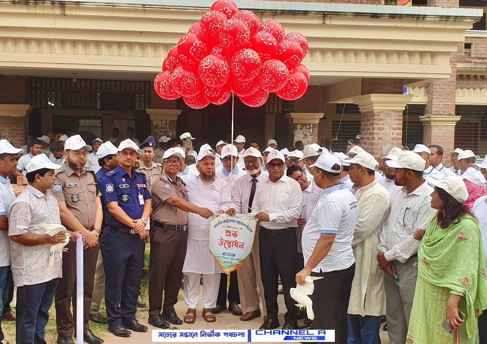 চাল বিতরণের সময় বস্তাগুলোর ওপর লেখা ‘শেখ হাসিনার বাংলাদেশ, ক্ষুধা হবে নিরুদ্দেশ’ স্লোগানটি উপস্থিত সবার নজরে আসে।
