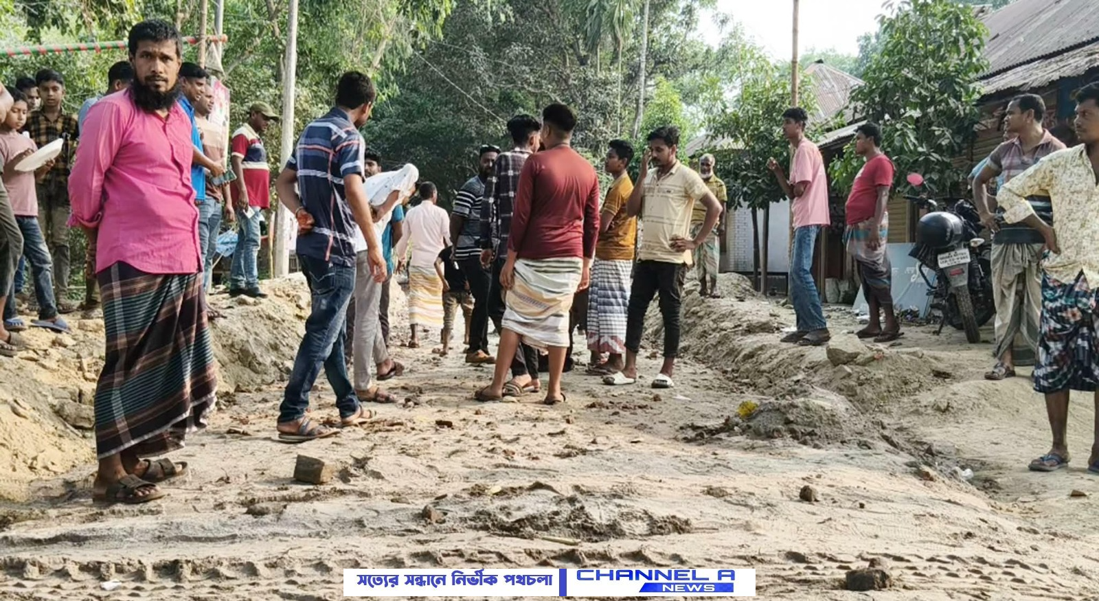 মান্দায় নিম্নমানের উপকরণে সড়ক নির্মাণের অভিযোগ, এলাকাবাসীর বাধায় কাজ বন্ধ