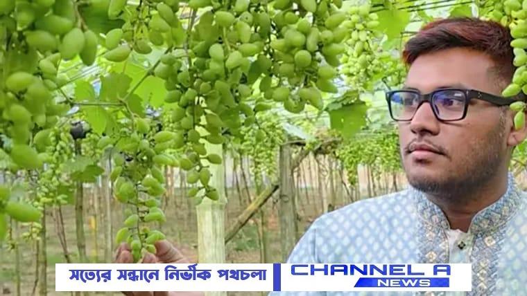 রাজশাহীতে আঙুর চাষে সাফল্য, বছরে ২০ লাখ টাকার স্বপ্ন উদ্যোক্তা সাগরের