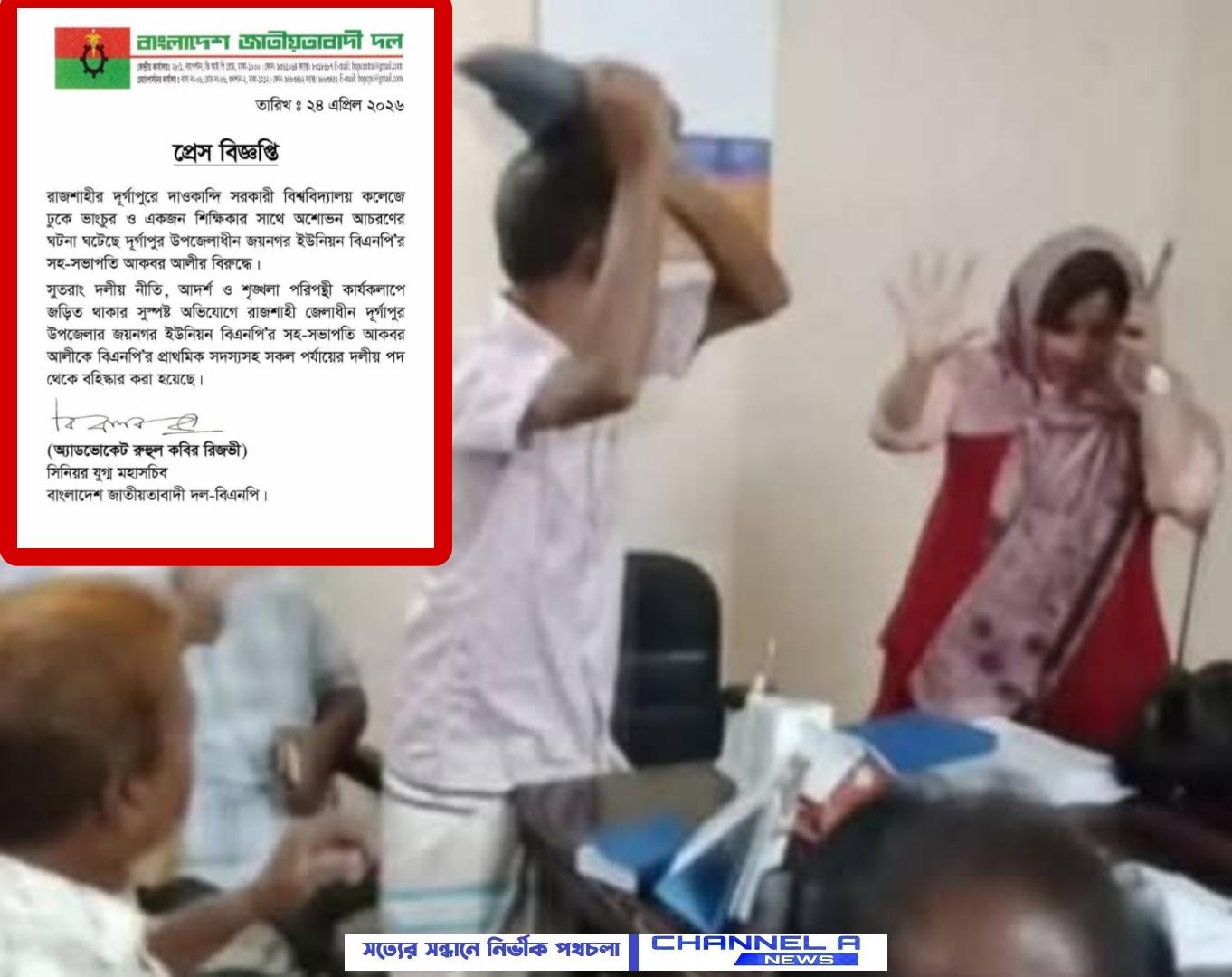 রাজশাহীতে শিক্ষিকাকে জুতাপেটার ঘটনায় বিএনপি নেতা বহিষ্কার