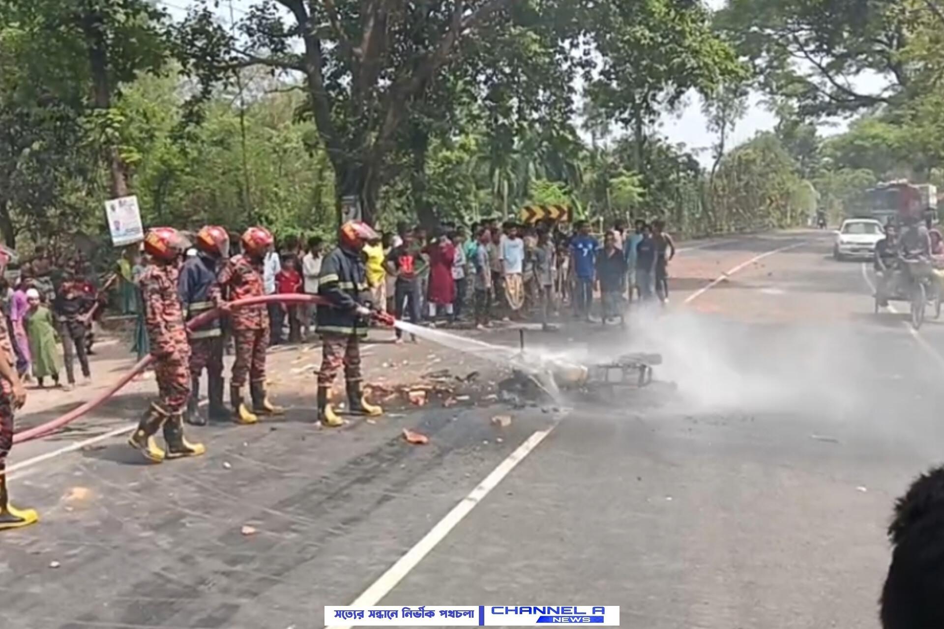 খবর পেয়ে পুলিশ ও ফায়ার সার্ভিসের সদস্যরা ঘটনাস্থলে পৌঁছে আগুন নিয়ন্ত্রণে আনে এবং সড়ক থেকে অবরোধ সরিয়ে যান চলাচল স্বাভাবিক করে।