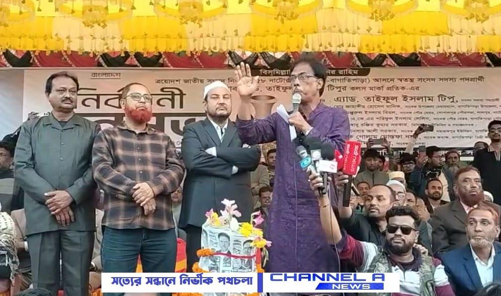চাঁদা দাবি ও ভোটারদের ভয়ভীতি দেখানোর অভিযোগ, কলস প্রতীকে ভোট চাইলেন টিপু বাগাতিপাড়ায় নির্বাচনী জনসভায় স্বতন্ত্র প্রার্থী তাইফুল ইসলাম টিপুর
