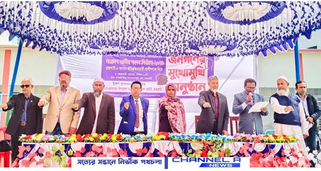 রাজশাহীতে জনগণের মুখোমুখি প্রার্থীরা ভোটারদের প্রশ্নের উত্তর দিয়ে জবাবদিহিতার অঙ্গীকার; স্বচ্ছ নির্বাচনের আহ্বান জাতীয় সংসদ নির্বাচনকে সামনে রেখে রাজশাহী-৩ আসনের