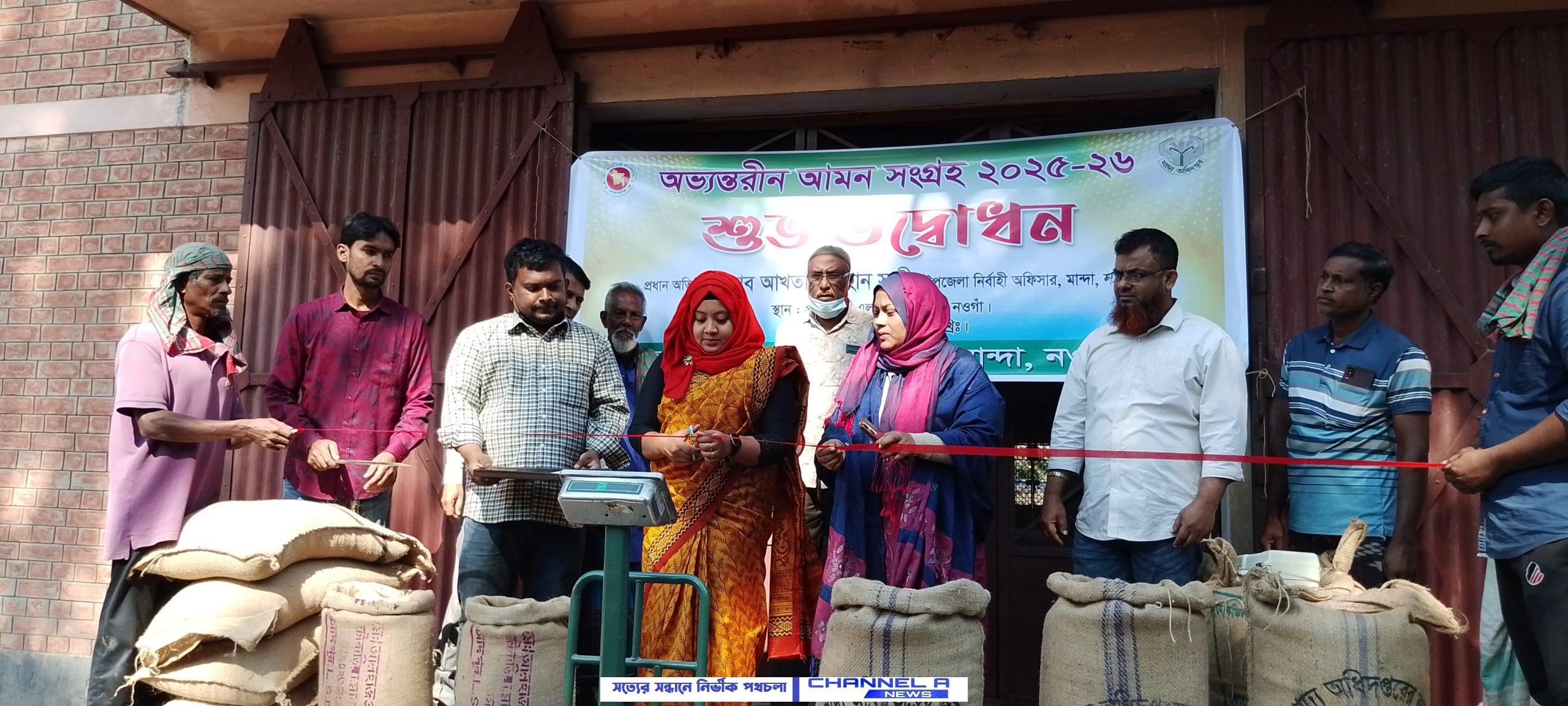 মান্দায় আমন মৌসুমে ধান-চাল সংগ্রহ কার্যক্রমের উদ্বোধন সরকারি নির্ধারিত দামে ১৬৪ টন ধান ও ১১৭ টন চাল সংগ্রহের লক্ষ্যমাত্রা নওগাঁর