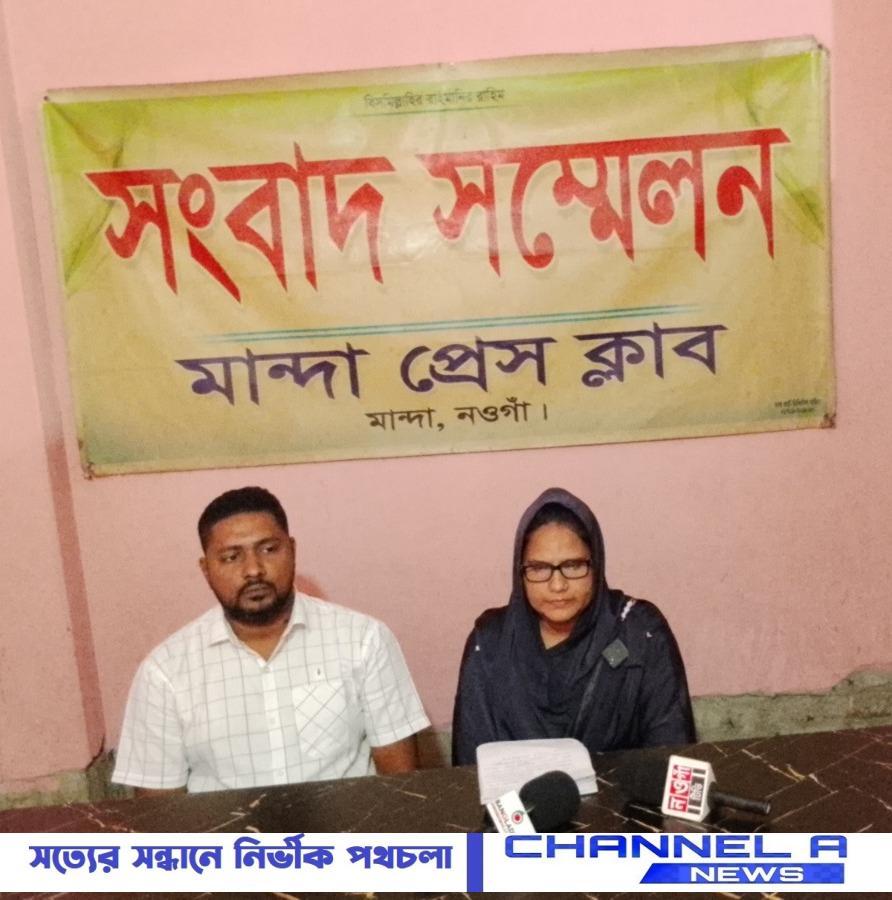 মান্দায় বাবা ও ভাইয়ের বিরুদ্ধে স্বামীকে মারধরের অভিযোগে সংবাদ সম্মেলন