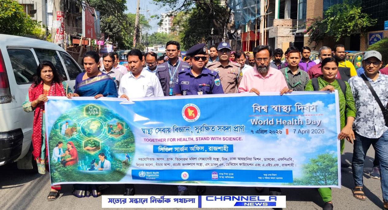 রাজশাহীতে বিশ্ব স্বাস্থ্য দিবস পালিত ‘স্বাস্থ্যসেবায় বিজ্ঞান, সুরক্ষিত সকল প্রাণ’ প্রতিপাদ্যে শোভাযাত্রা ও আলোচনা সভা অনুষ্ঠিত ‘স্বাস্থ্যসেবায় বিজ্ঞান, সুরক্ষিত সকল